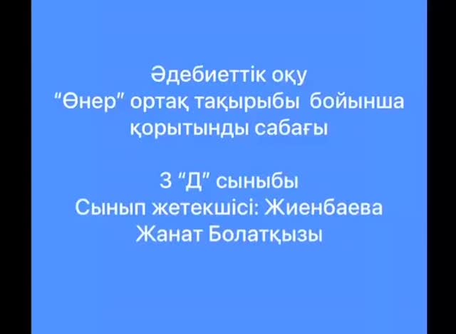 3 «Д» сыныбында Әдебиеттік оқу пәнінен «Өнер» ортақ тақырыбы бойынша…